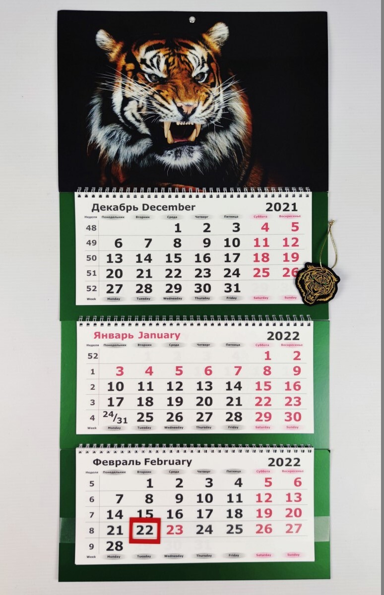 Календарь-трекер Любовный размер А3 символ года Тигр Новый год 2022