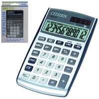 Калькулятор карманный Citizen CPC-112, 12 разр., двойное питание, 72x120x9мм, серебристый
