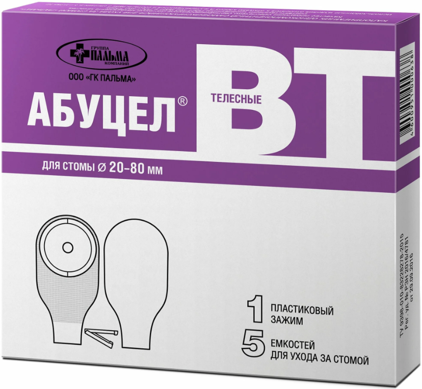 Калоприемник однокомпонентный абуцел- вт (диаметр стомы до 80 мм) 5 шт.