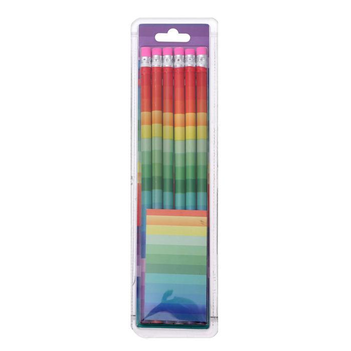 Набор карандашей 6 штук чёрнографитных с ластиком, твёрдость НВ, "Радуга"