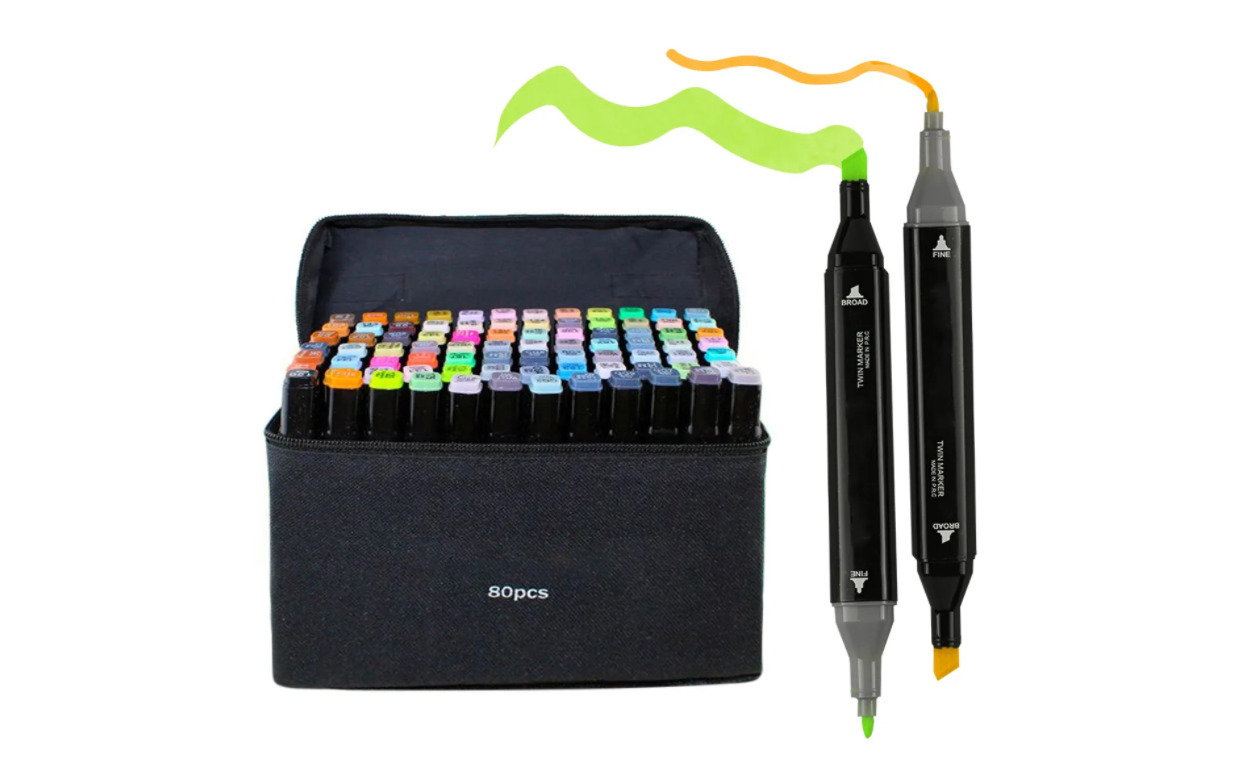 Набор художественных двухсторонних маркеров в сумке 80 цветов