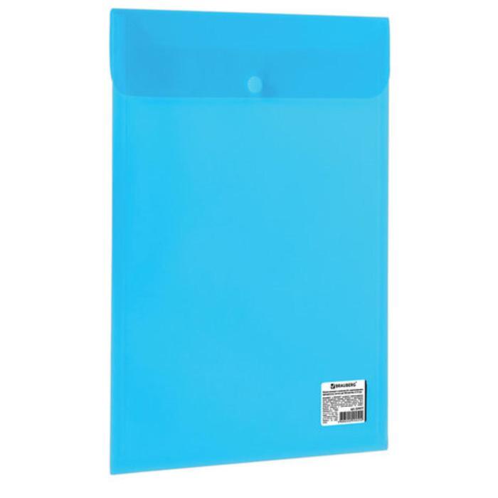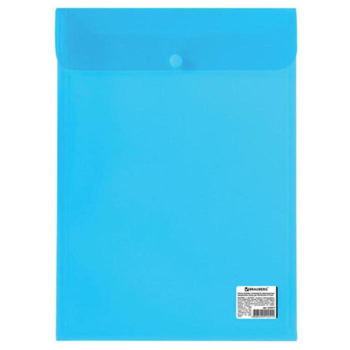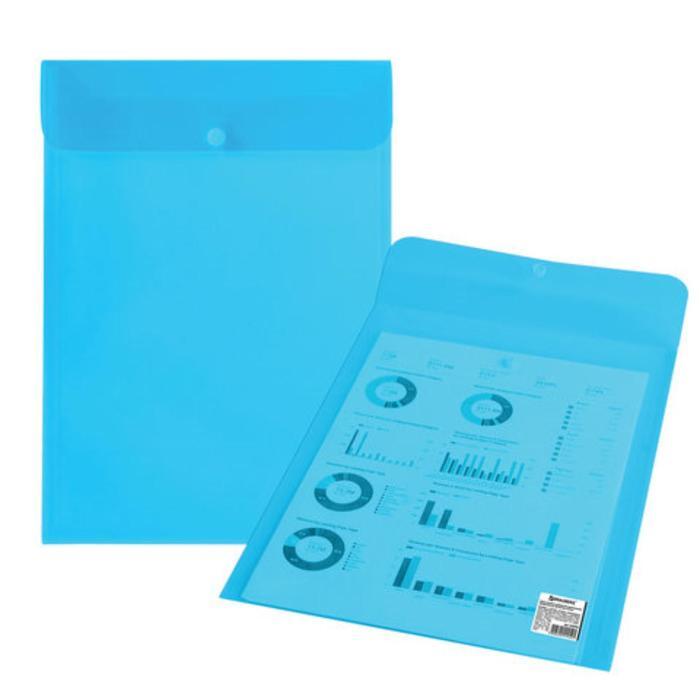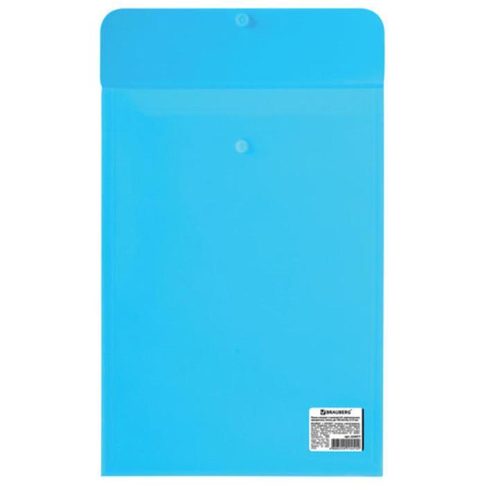 Папка-конверт на кнопке А4, 150 мкм, BRAUBERG, прозрачная, синяя количество в упаковке: 1