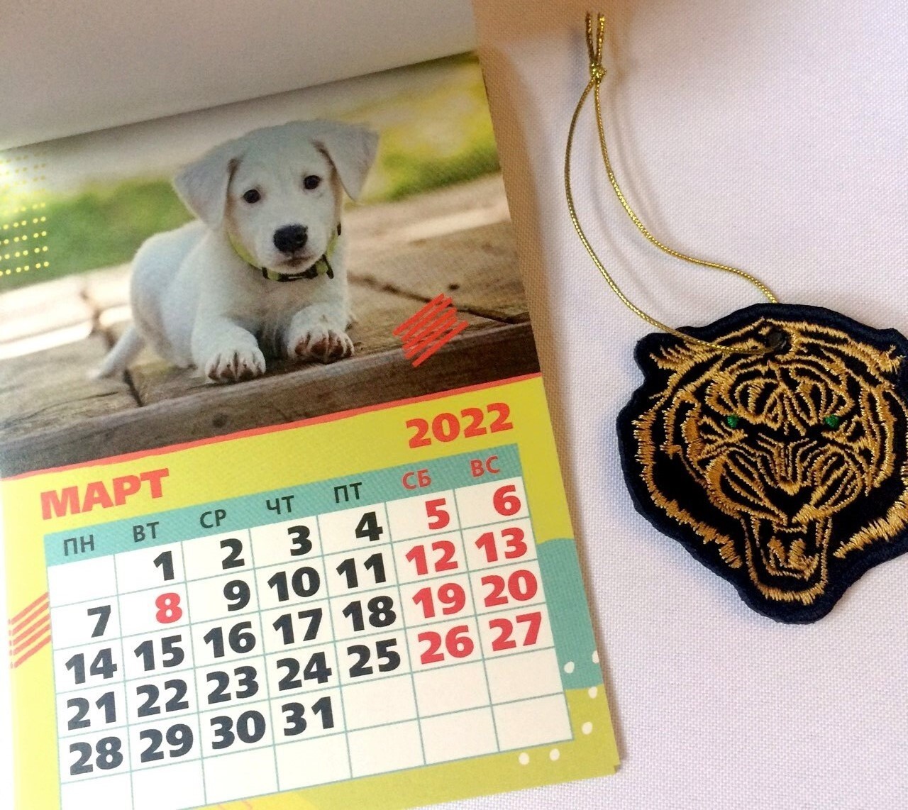 Календарь 2022 магнитный Собаки и щенки отрывной на холодильник + игрушка на елку символ года Тигр