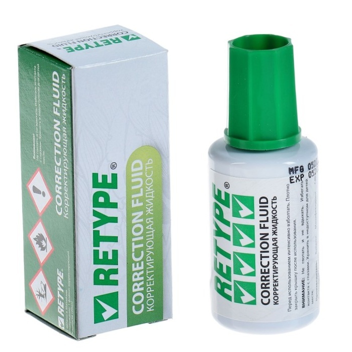 3 шт. Корректирующая жидкость Retype, 20 мл, на химической основе, с кистью
