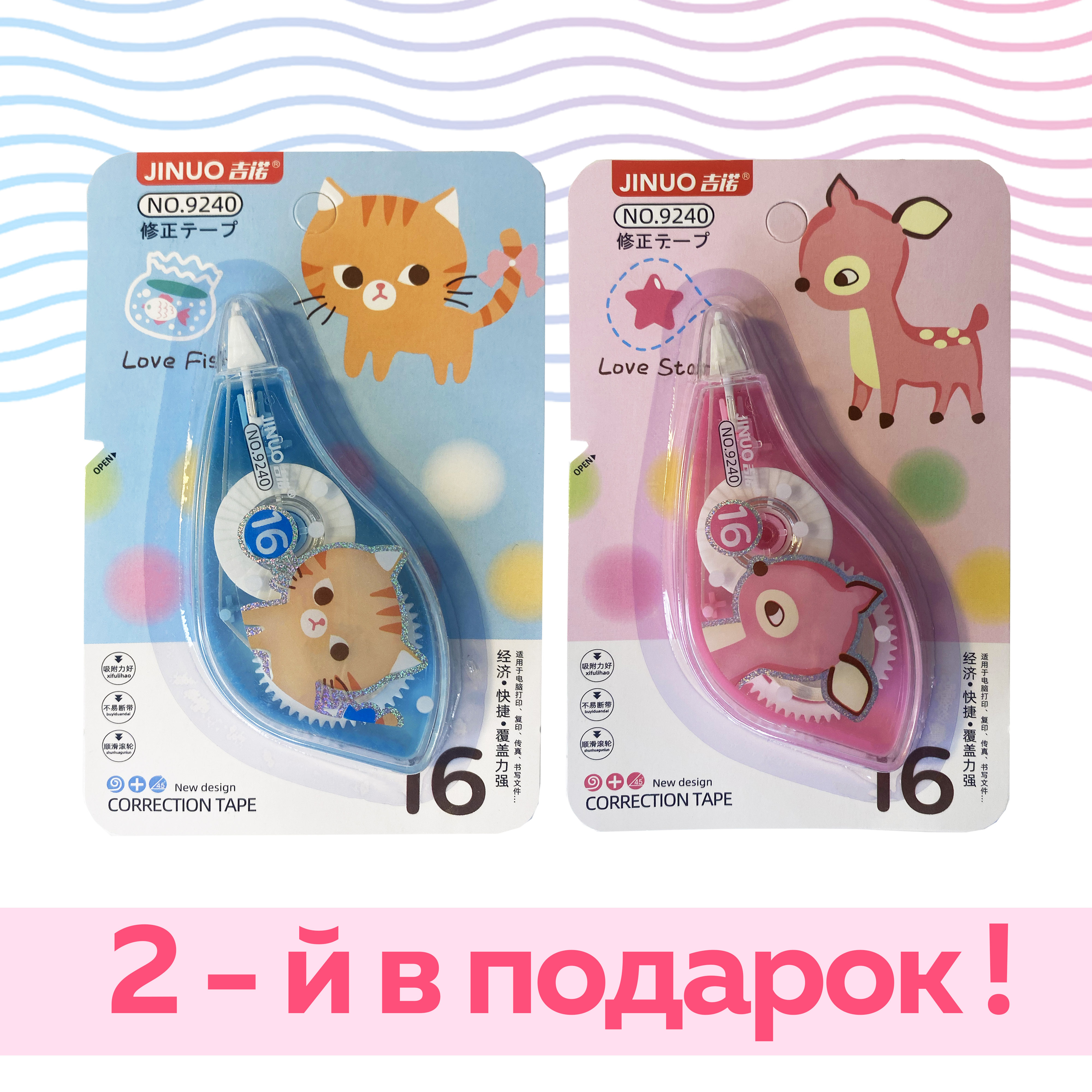 Корректирующая лента роллер - корректор, штрих замазка 0.5мм, 2 штуки.