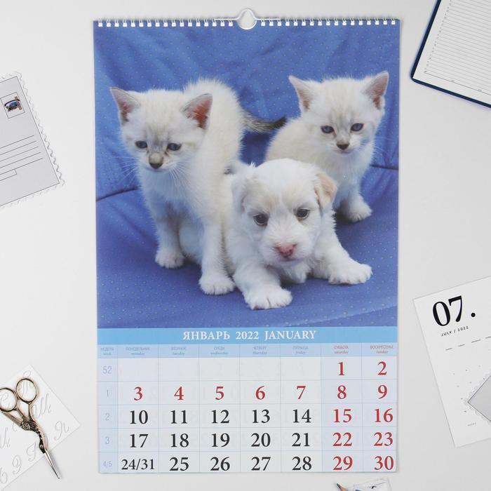 Календарь перекидной на ригеле "Забавные Щенки и Котята" 2022 год, 320х480 мм