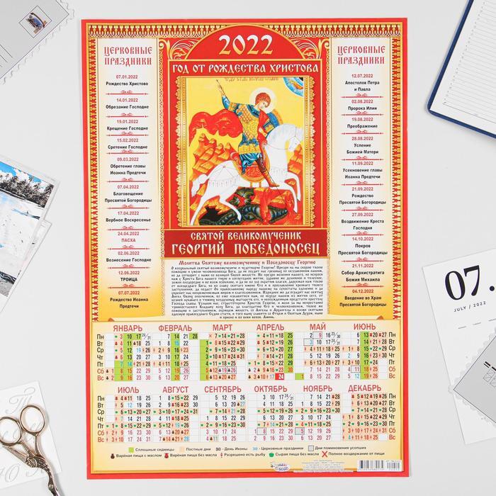 Календарь листовой А3 "Православный 2022 Святой Великомученик Георгий Победоносец"