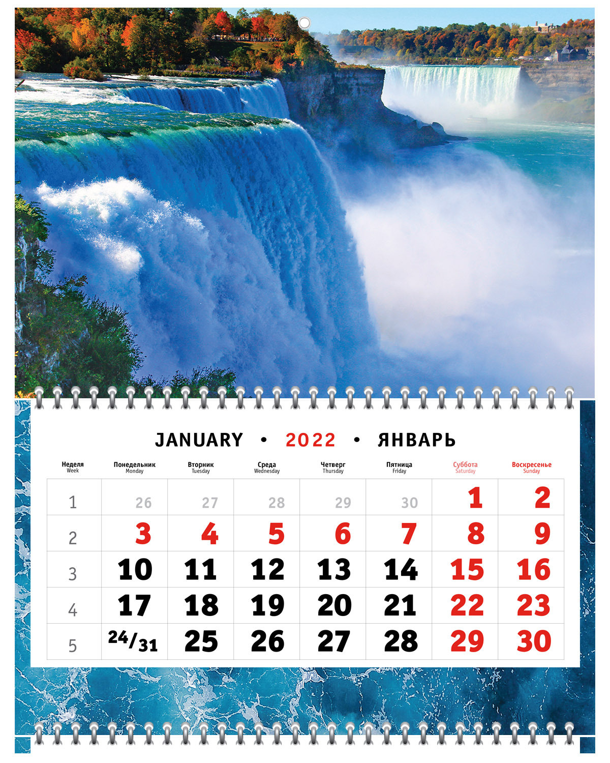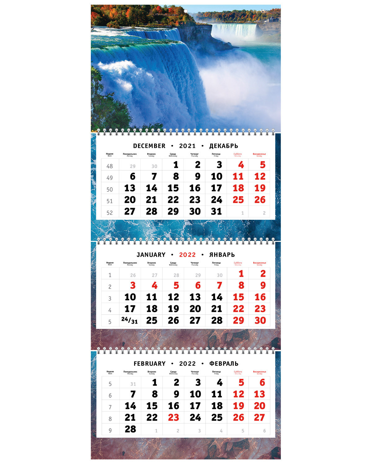 Настенный квартальный календарь на 3-х пружинах на 2022 год - Силы Ниагары