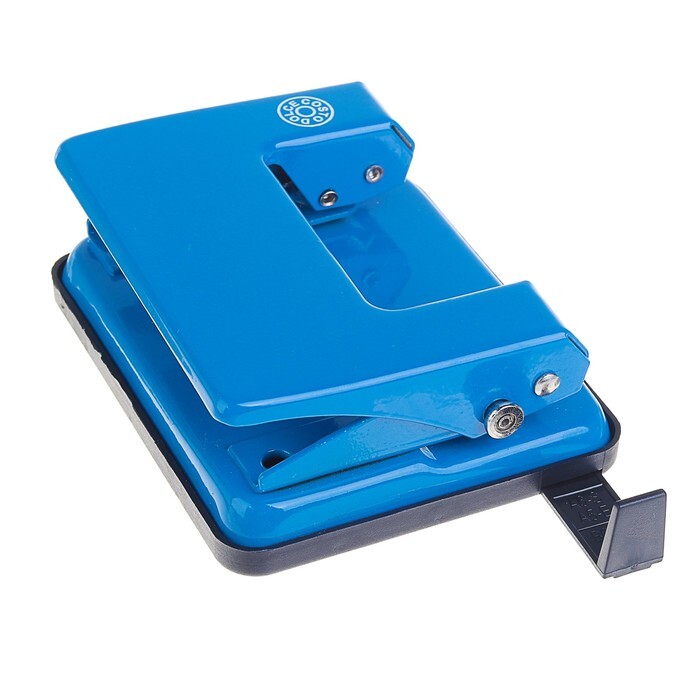 Дырокол на 10 листов, с линейкой, синий, Metallic