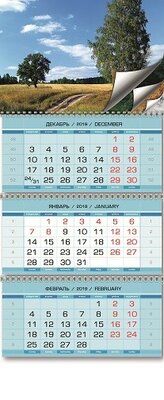 Родные просторы. Календарь квартальный трехблочный настенный на 2019 год