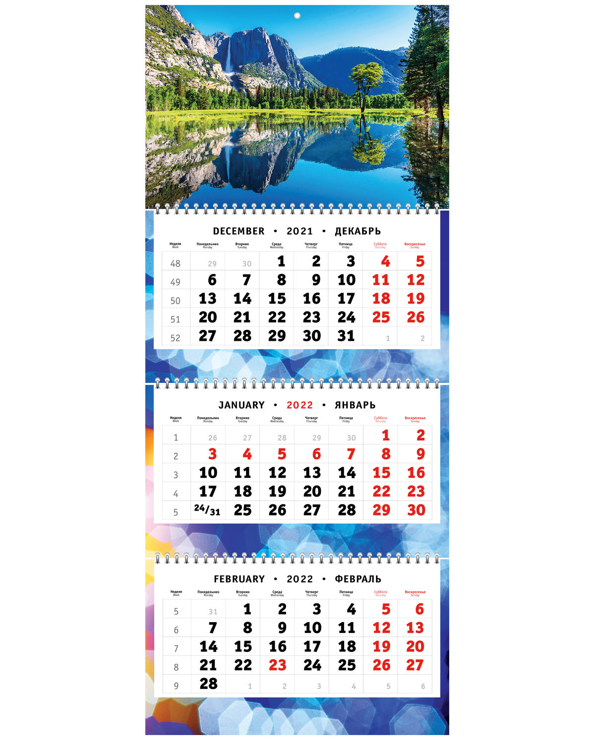 Календарь настенный квартальный трио на 2022 год - Заповедное озеро