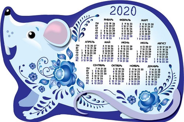 Календарь 2020 (на магните). Год Крысы. Гжель