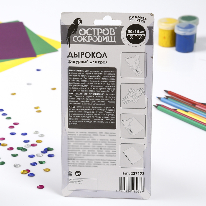 Дырокол фигурный для края Ажур, диаметр вырезной фигуры 50х16 мм