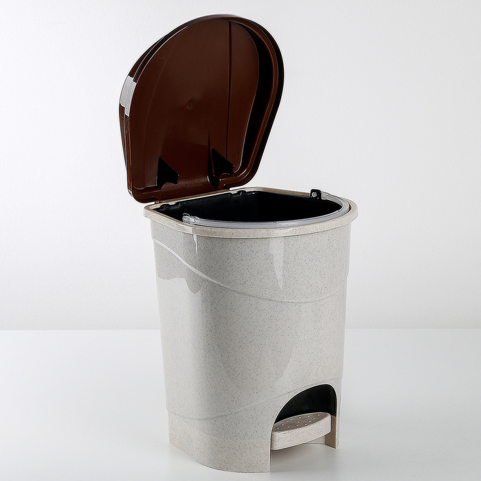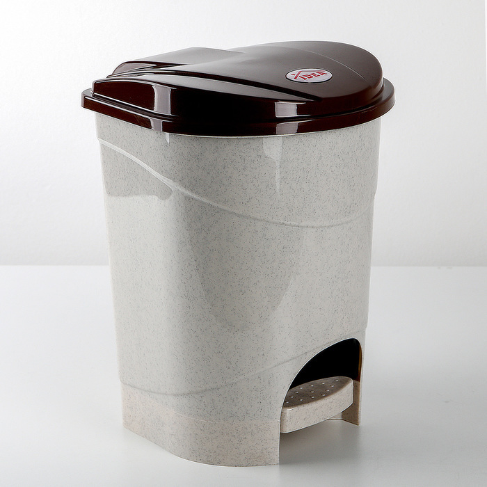 Контейнер для мусора, 7 л, с педалью, цвет бежевый мрамор