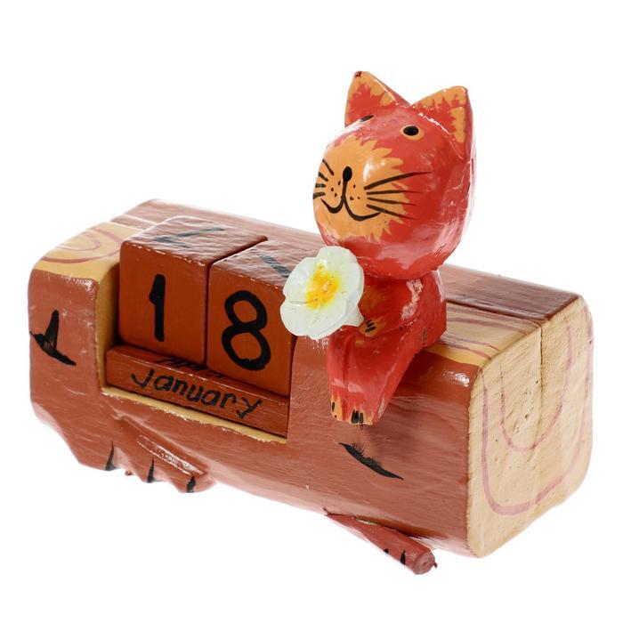Деревянный календарь с кубиками "Киса с цветком" 12,3х6,5х11 см