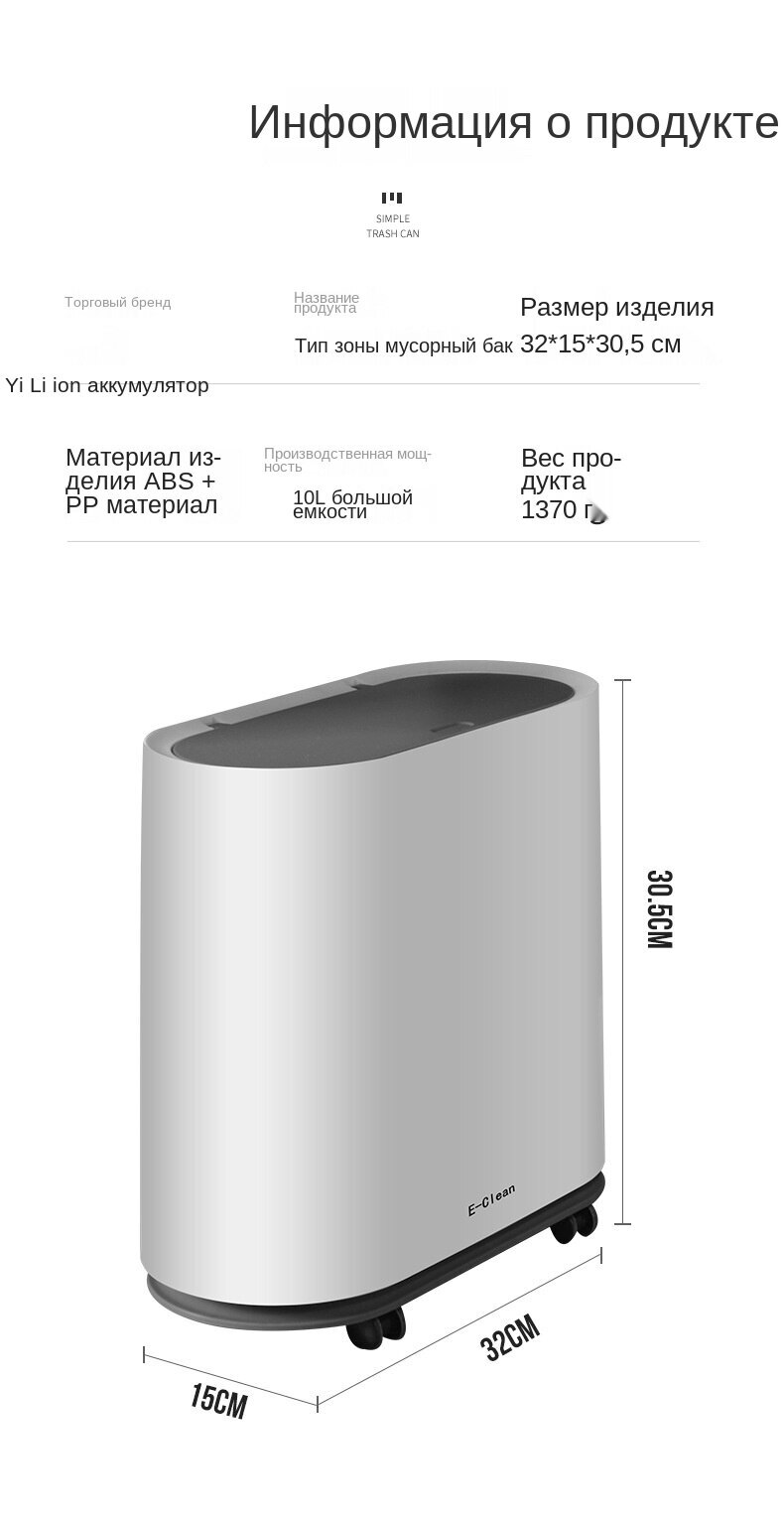 Мусорный ящик с нажимным типом YILI белый 32cmx15cmx30.5cm