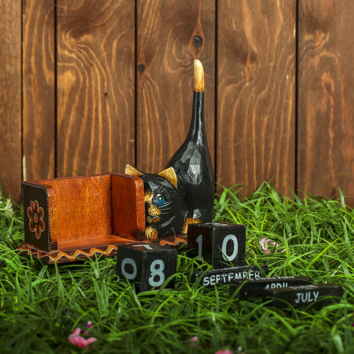 Календарь настольный дерево Тёмная кошка 22х6,5х17 см