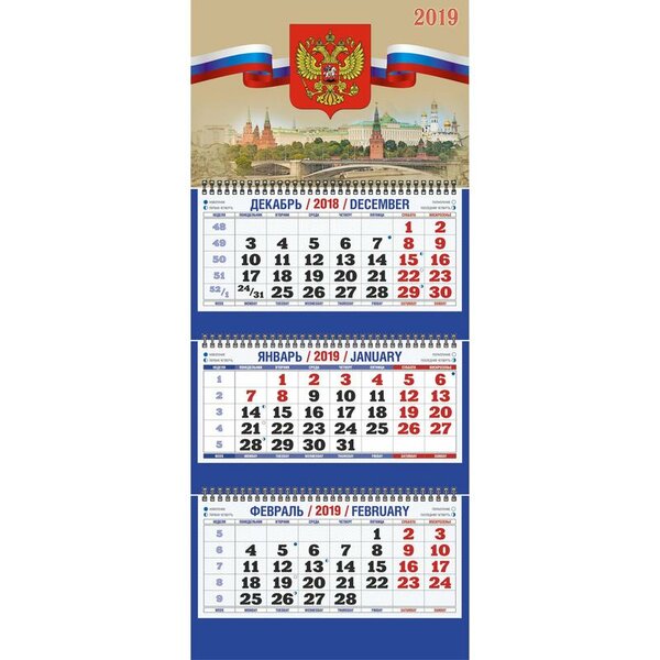 Календарь настенный на 2019 год "Госсимволика", 310х690 мм