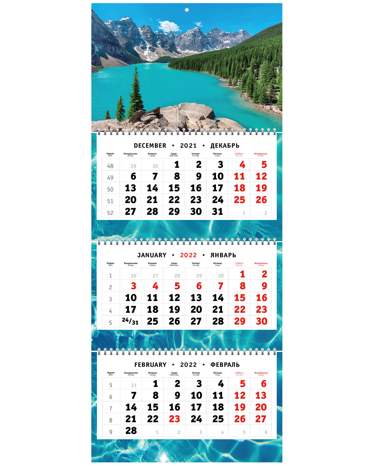Календарь 2022 настенный, календарь квартальный - Лазурное озеро