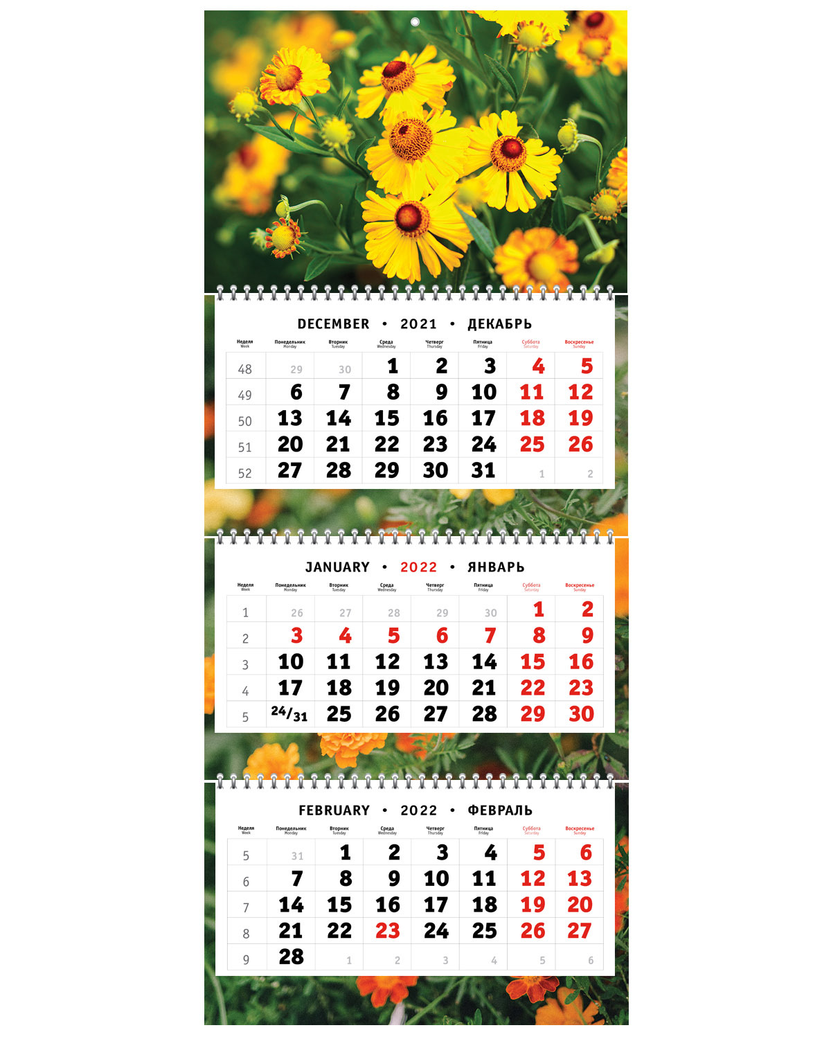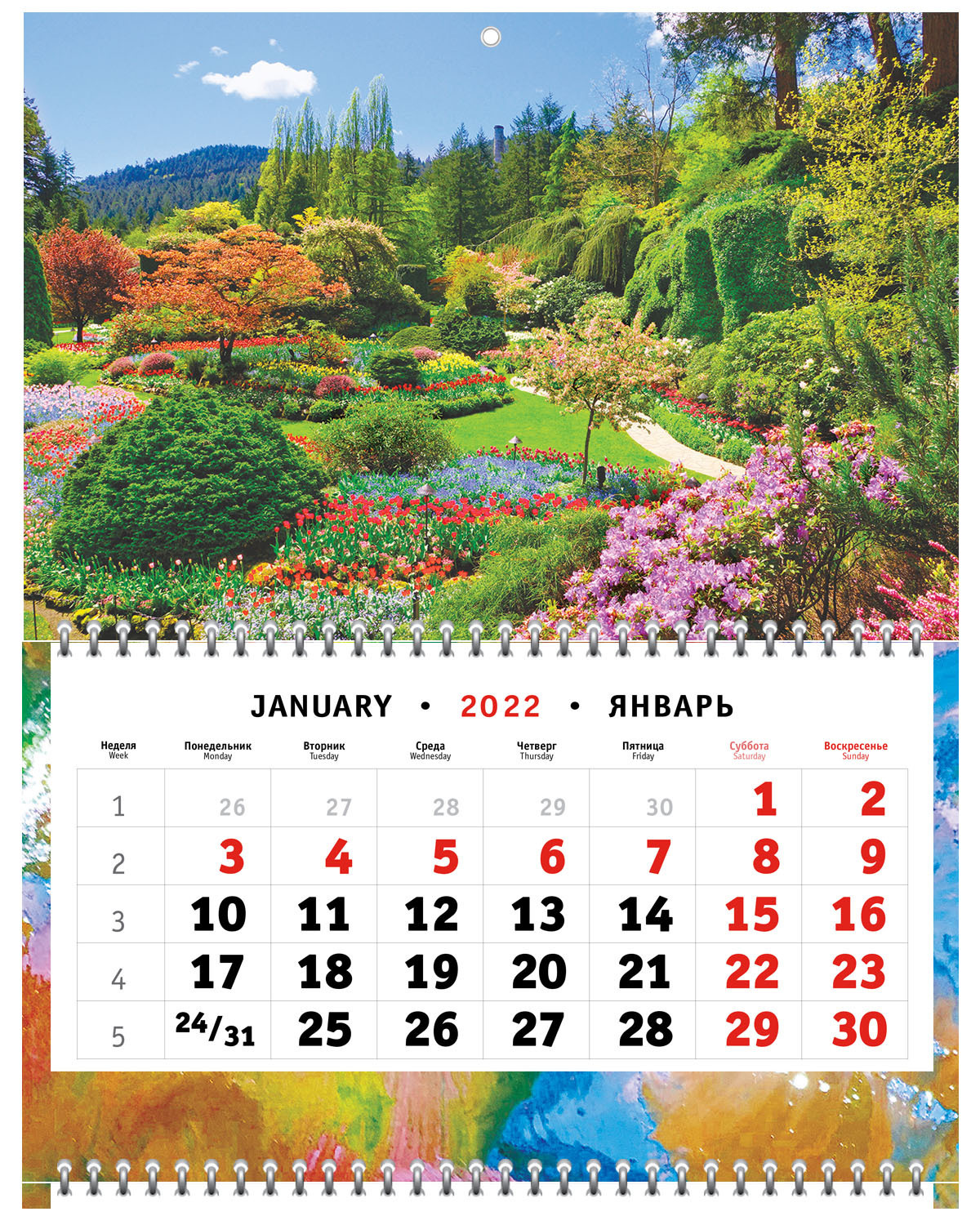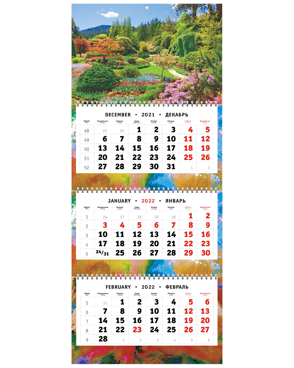 Настенный квартальный календарь на 3-х пружинах на 2022 год - Райский сад