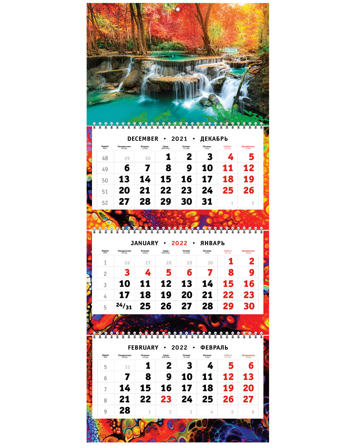 Квартальный календарь на 2022 год трехпружинный - Водопад осенью: Игра воды и цвета