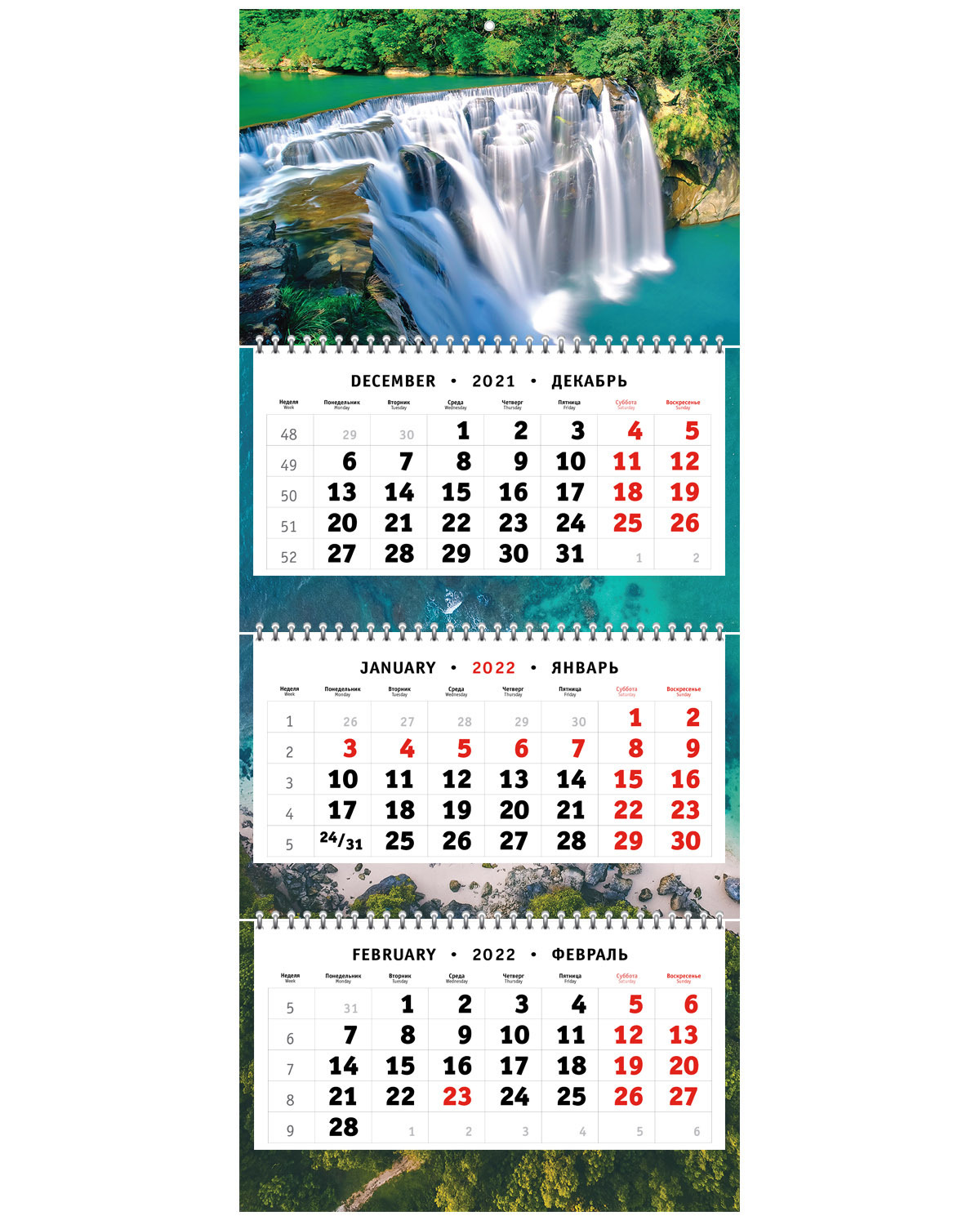 Календарь квартальный трехсекционный на 2022 год - Водопад в тропиках