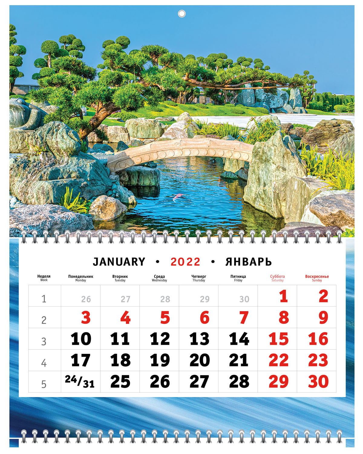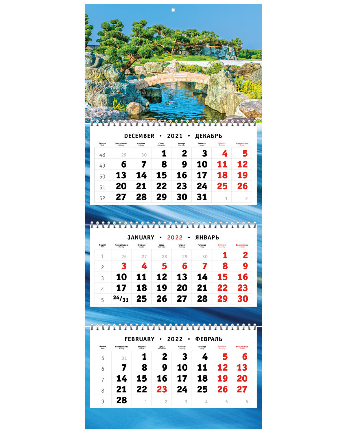 Настенный квартальный календарь на 3-х пружинах на 2022 год - Японский садик