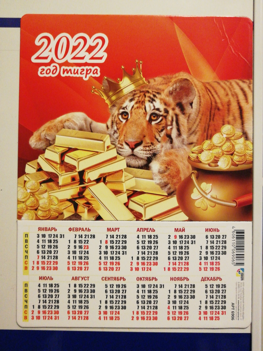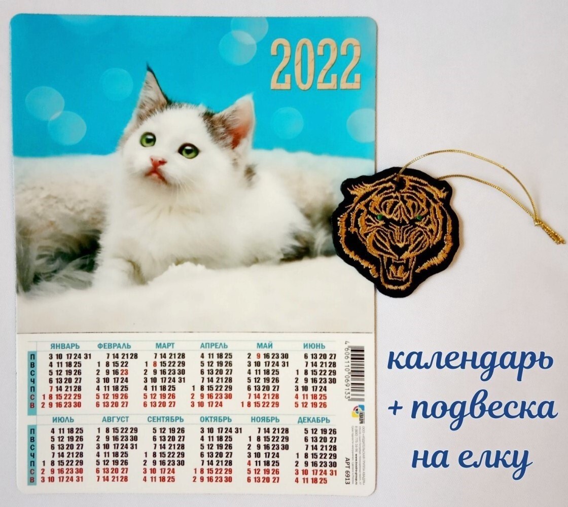 Календарь 2022 магнитный Котенок 15х20 см на холодильник + елочная игрушка символ года Тигр