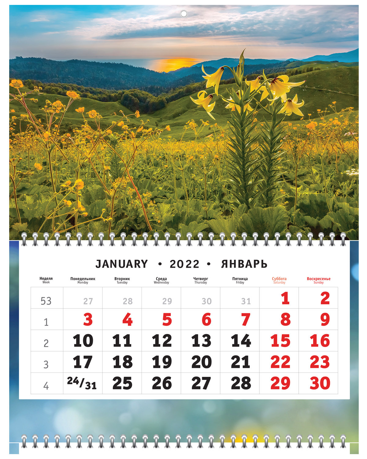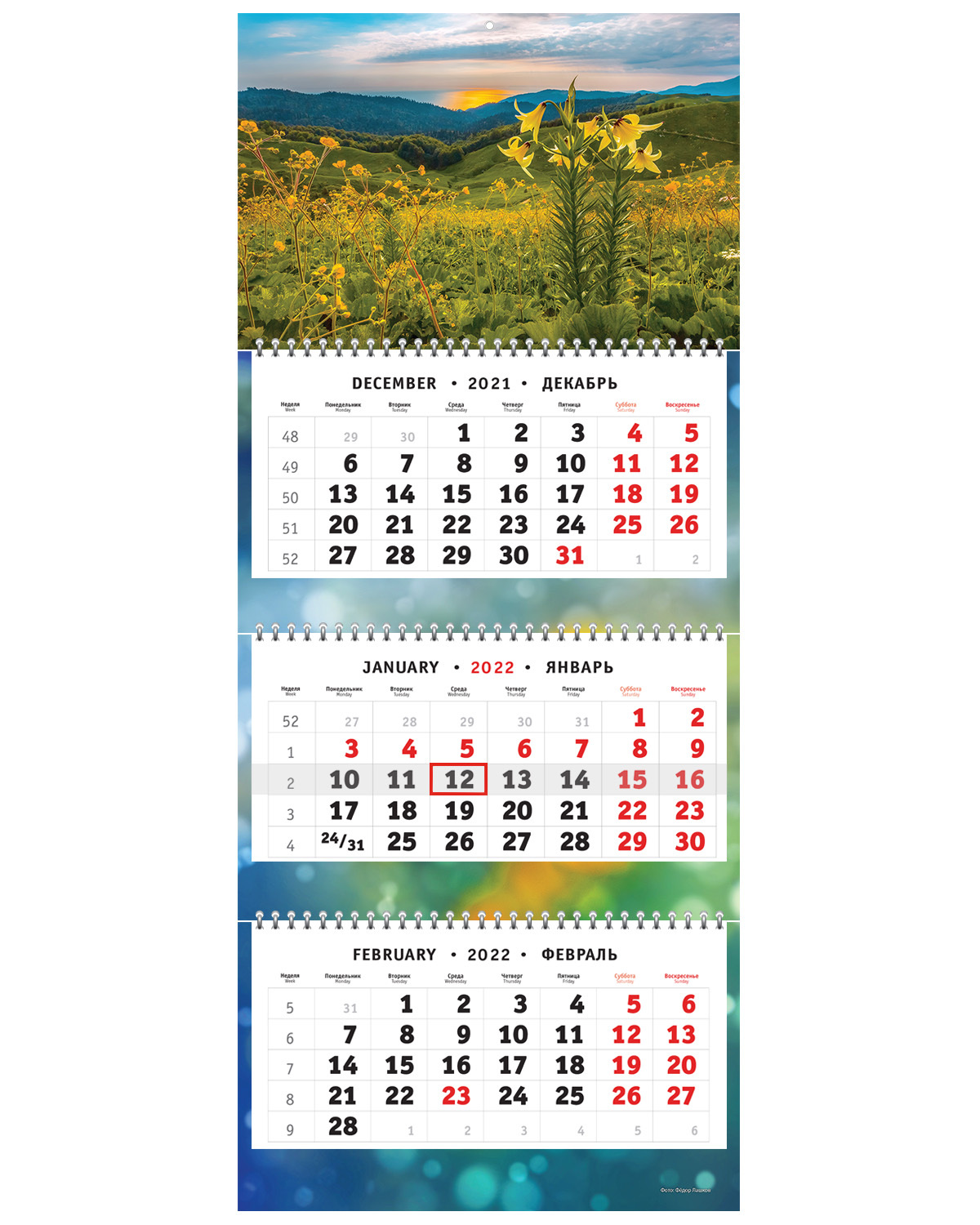 Календарь 2022 настенный, календарь квартальный - Горные травы
