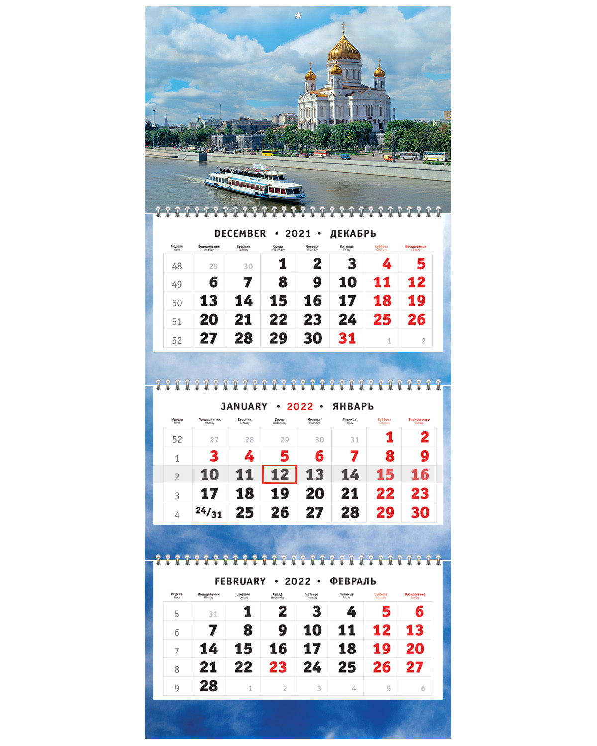 Календарь 2022 настенный, календарь квартальный - Храм Христа Спасителя