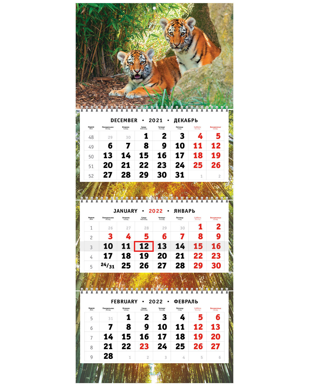 Календарь 2022 настенный, календарь квартальный - Символ года - Год тигра - Лесные братья