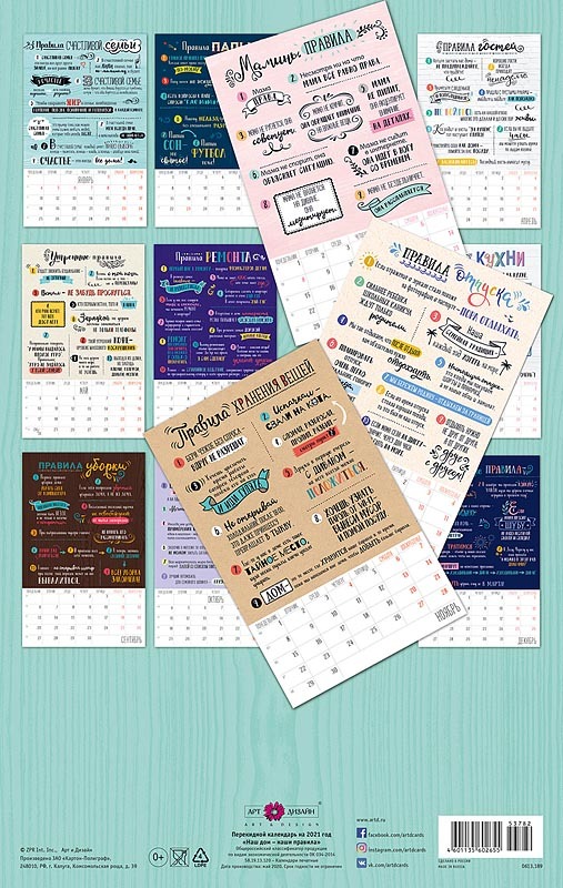 Календарь Арт и Дизайн 2021 перекидной настенный спираль Наш дом-наши правила