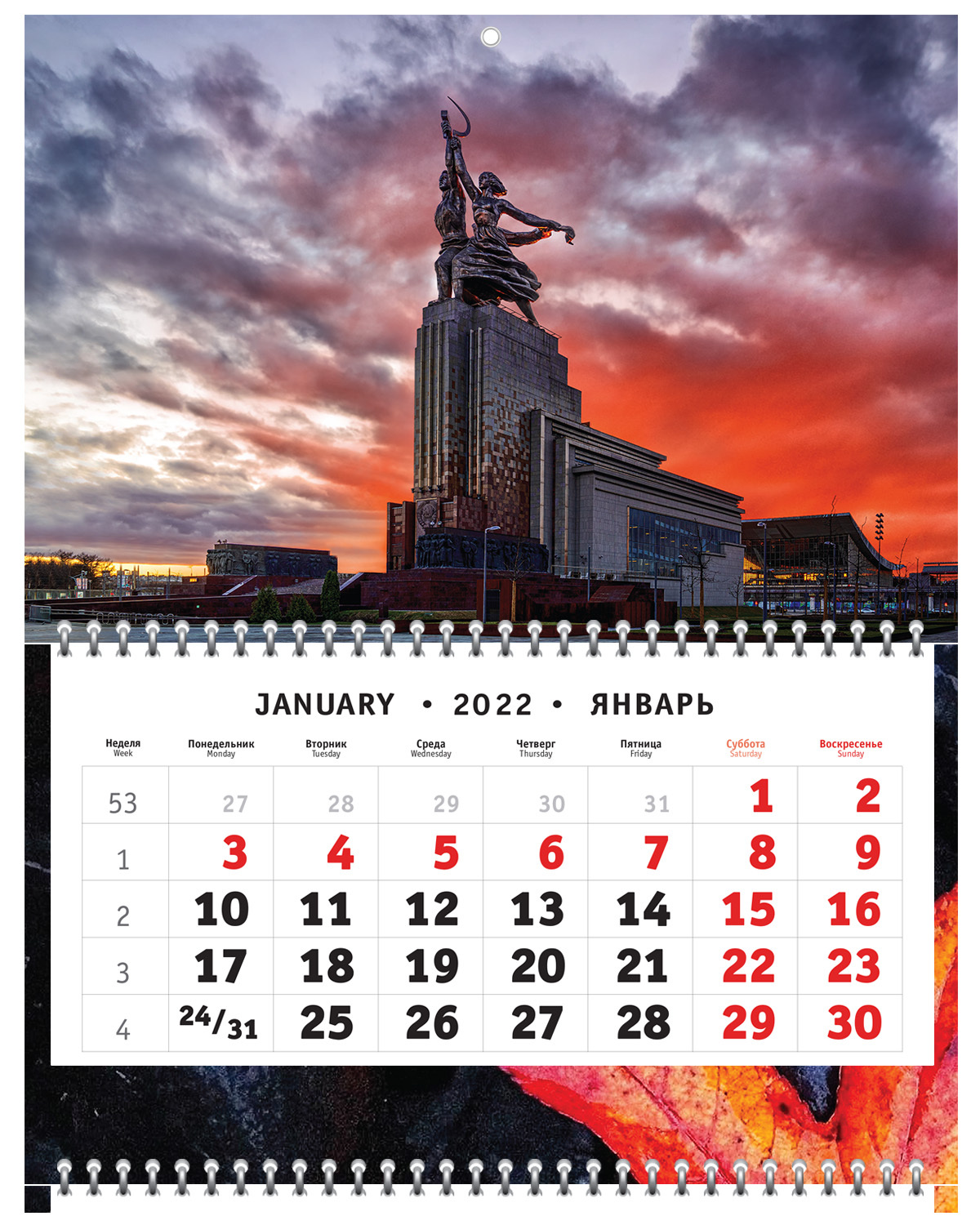 Календарь 2022 настенный, календарь квартальный - Рабочий и колхозница