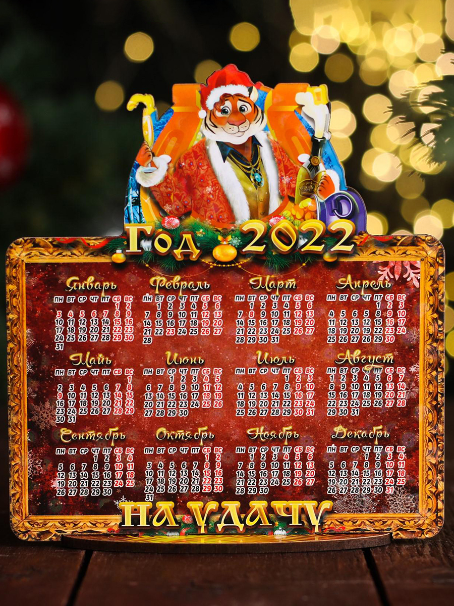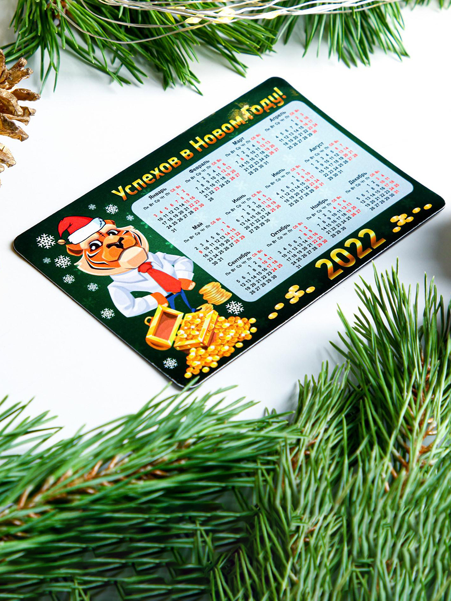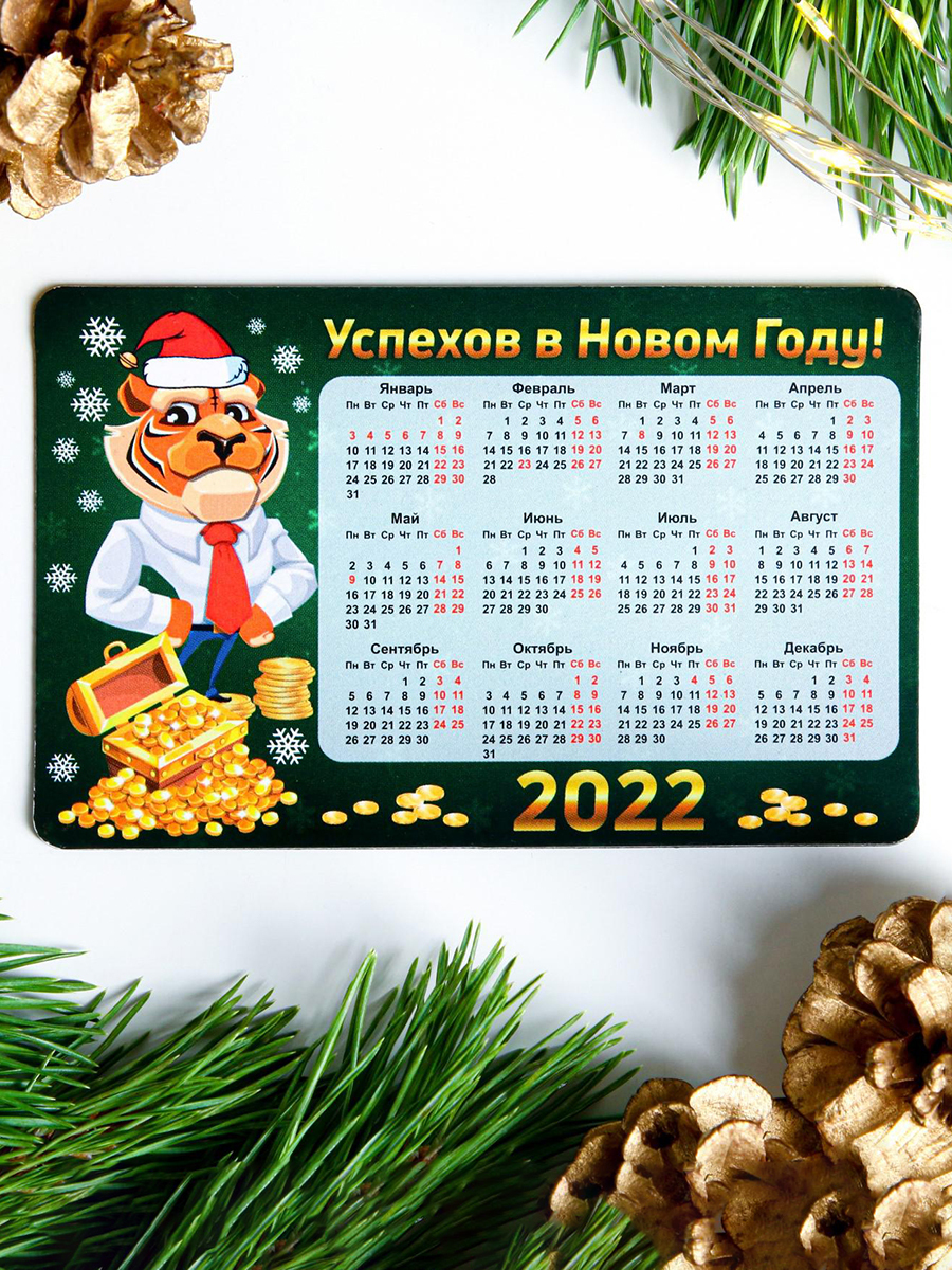 Магнит с календарем "Успехов в Новом Году!" тигр в рубашке с золотом, 11 см х 7 см, 2022 год