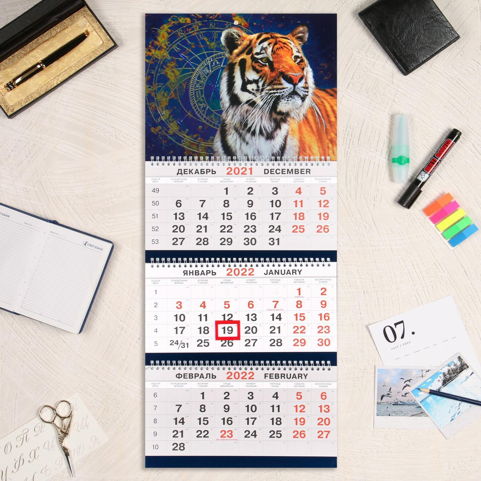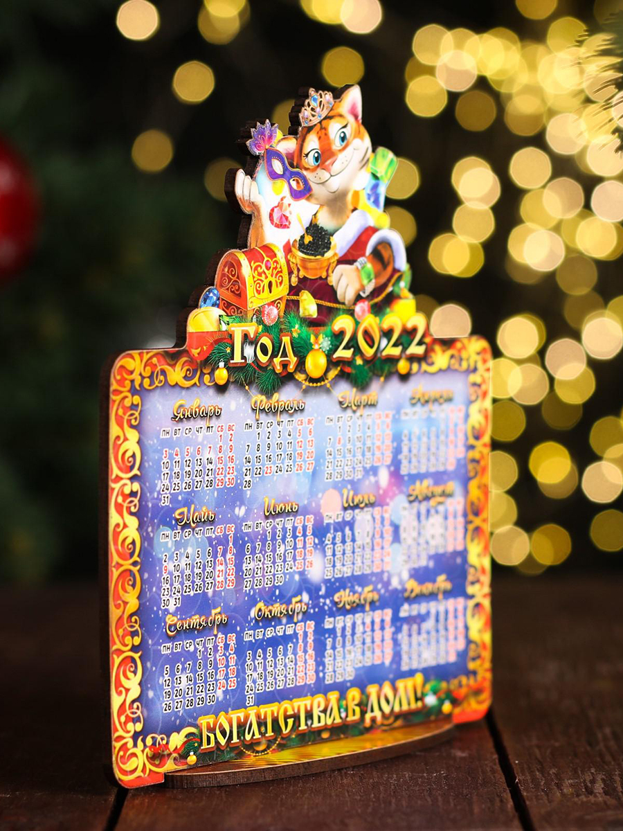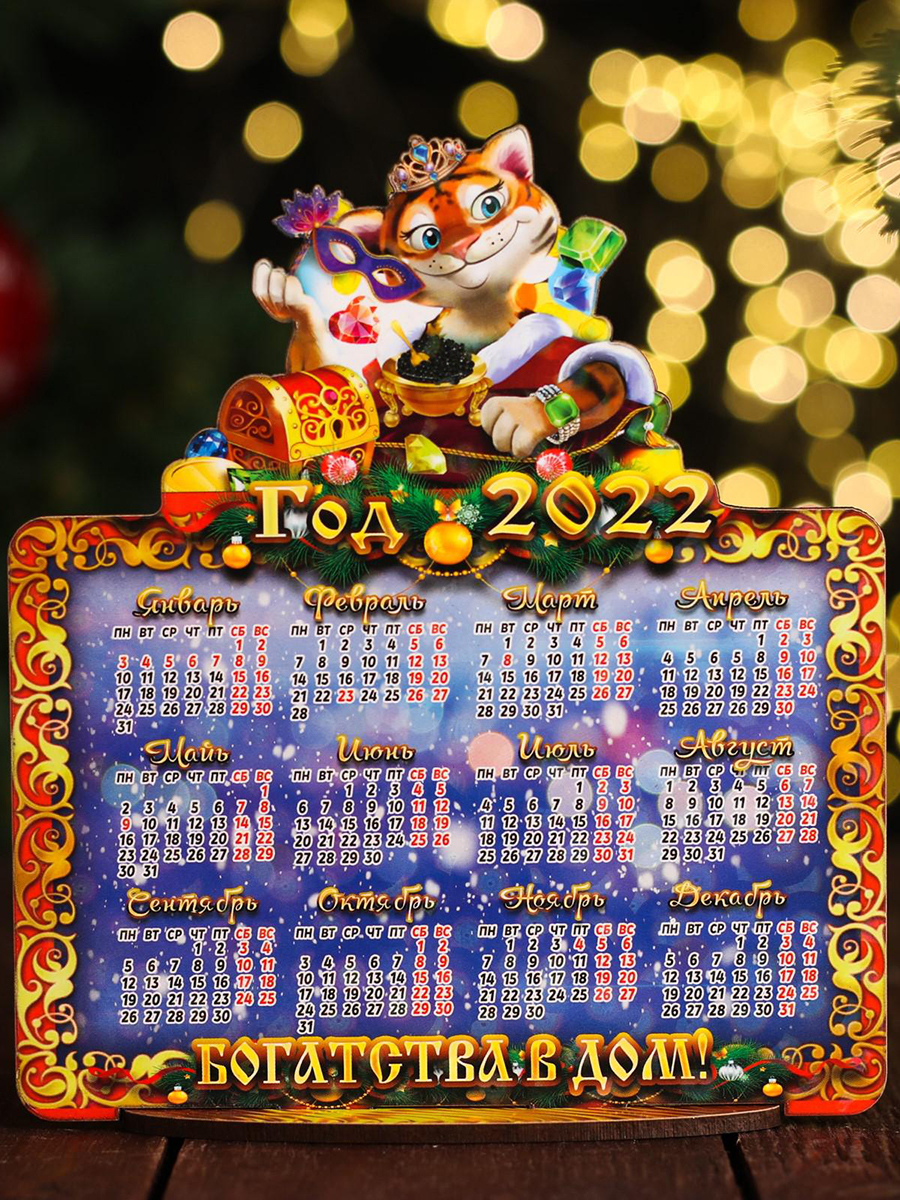 Магнит с календарем "Успехов в Новом Году!" тигр в рубашке с золотом, 11 см х 7 см, 2022 год
