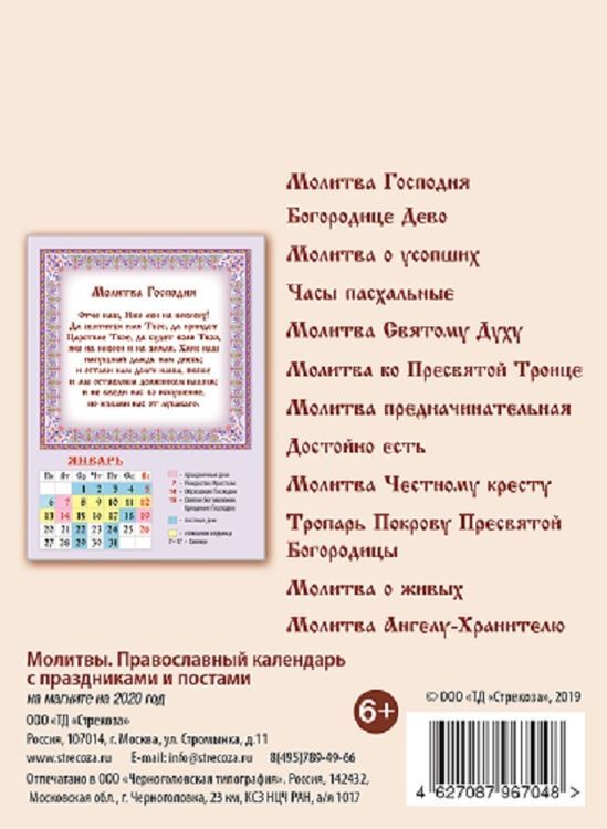 Православный календврь с праздникаами и постами 2020 (на магните). Молитвы