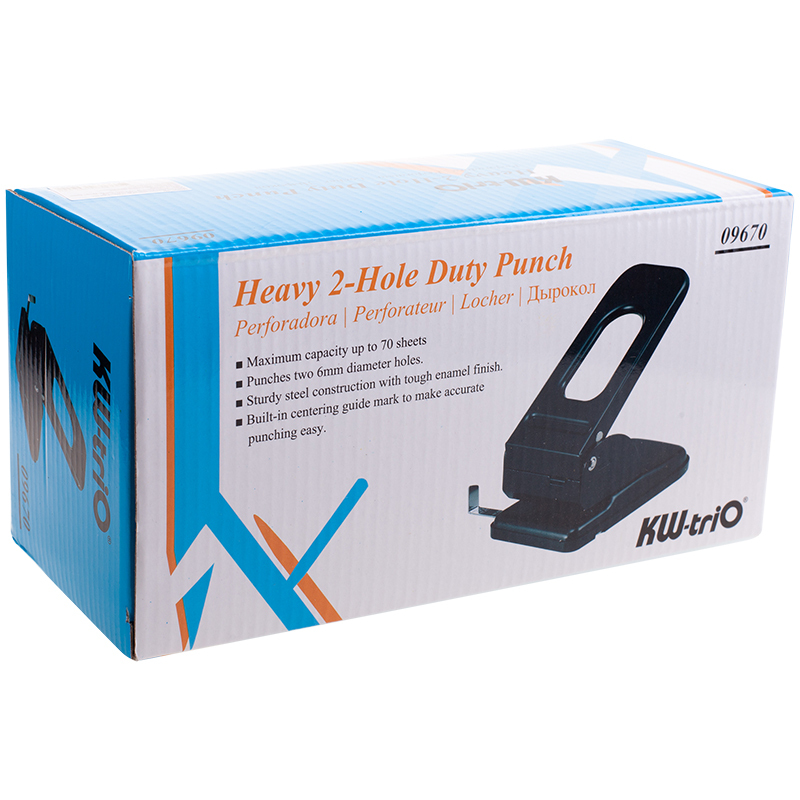 Дырокол KW-trio 70л., металлический, черный, с линейкой