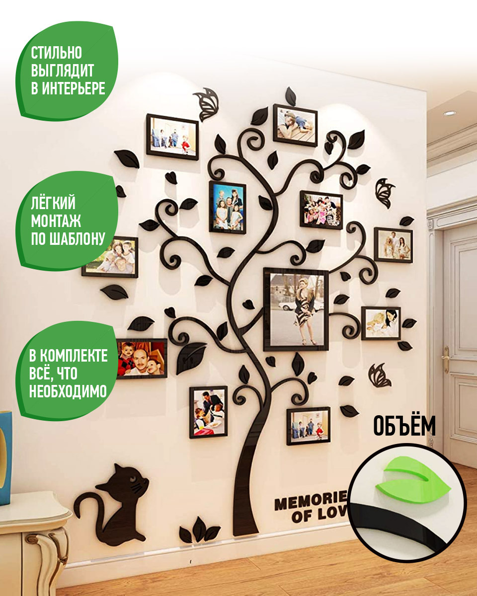 Семейное древо/ Наклейка интерьерная на стену/ Фоторамка-наклейка 144*175 дерево чёрное