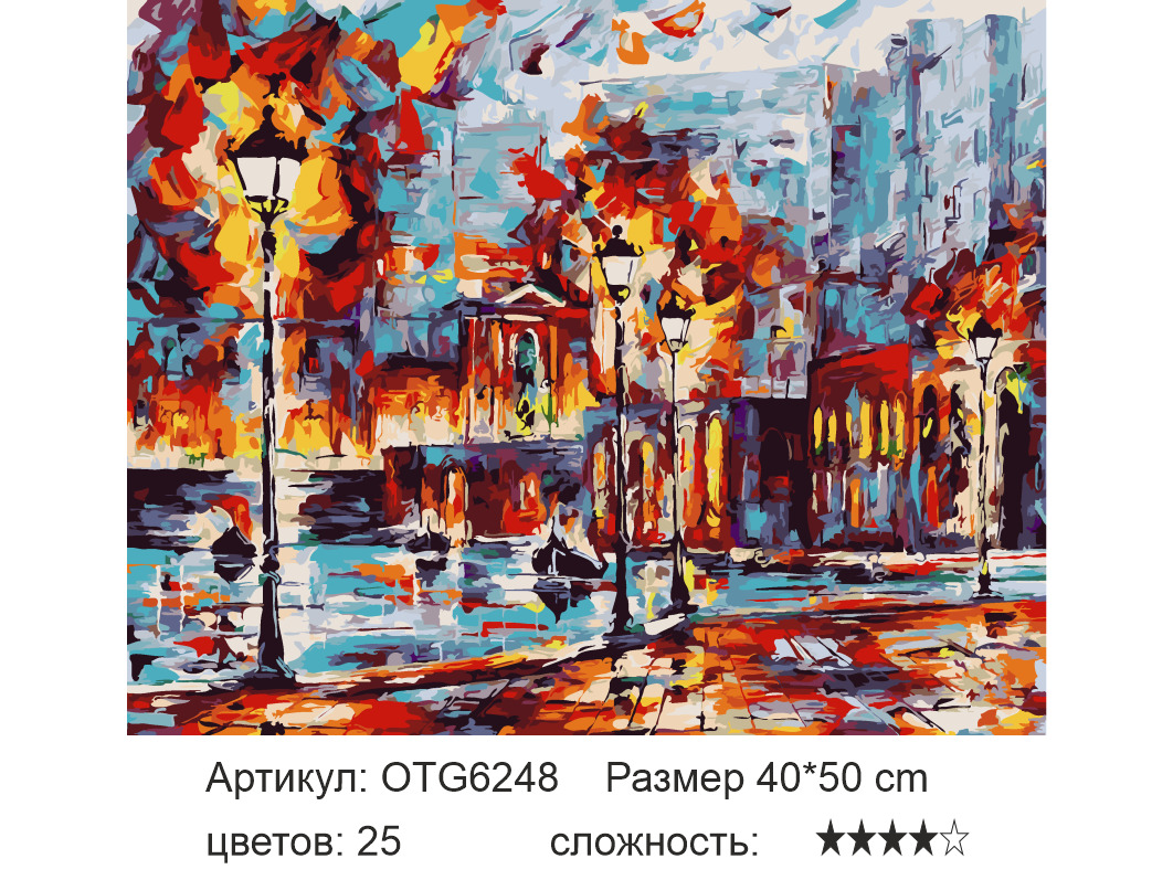 Картина по номерам на подрамнике 40х50 см "Осенний город" 25 цветов
