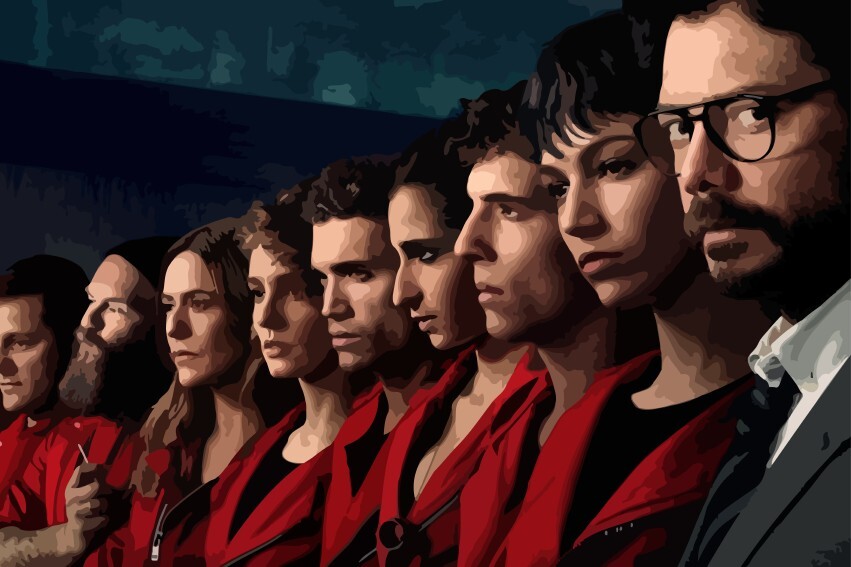 Картина по номерам на холсте Сериал Бумажный Дом - 7942 Г 60x40