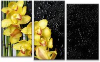 Картина модульная Картиномания "Желтые орхидеи и бамбук", 90 х 57 см, Дерево, Холст