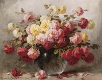 Цветы, картина "Хенжне Адриэн Хермин Дик «Розы в вазе»", 25x20 см, на бумаге