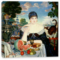 Кустодиев Борис, картина "Купчиха за чаем", 80x80 см, на холсте, на узком подрамнике
