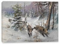 Охота, картина "Постер 31160", 80x60 см, на холсте, на узком подрамнике