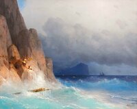 Айвазовский Иван, картина "Счастливое избавление", 25x20 см, на бумаге