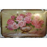 Картина репродукция "Розы, цветы, натюрморт, ваза", 60x100 см. Золотой багет (рамка)