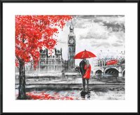 Картина в раме Двое под зонтом, 26x20, Люди, Мужчина и женщина, Акварельная живопись