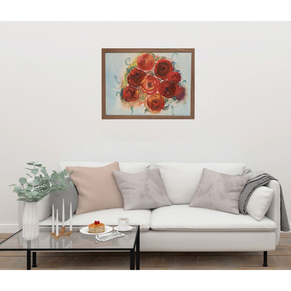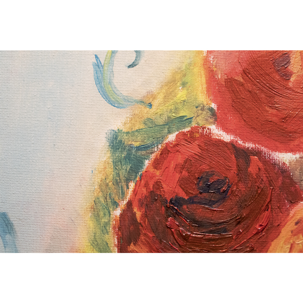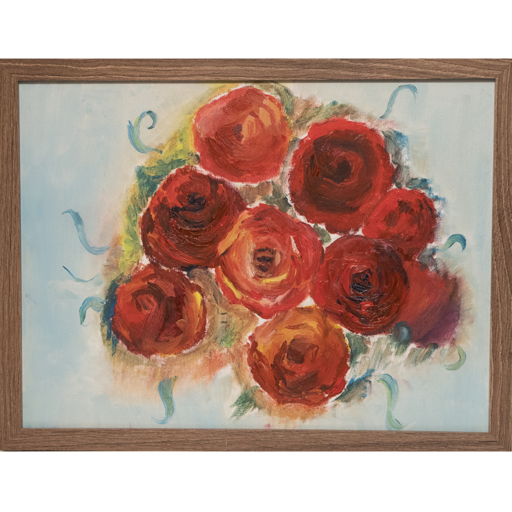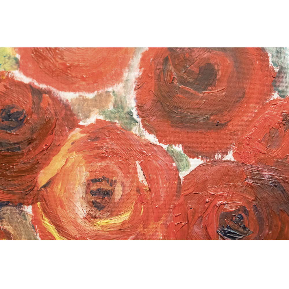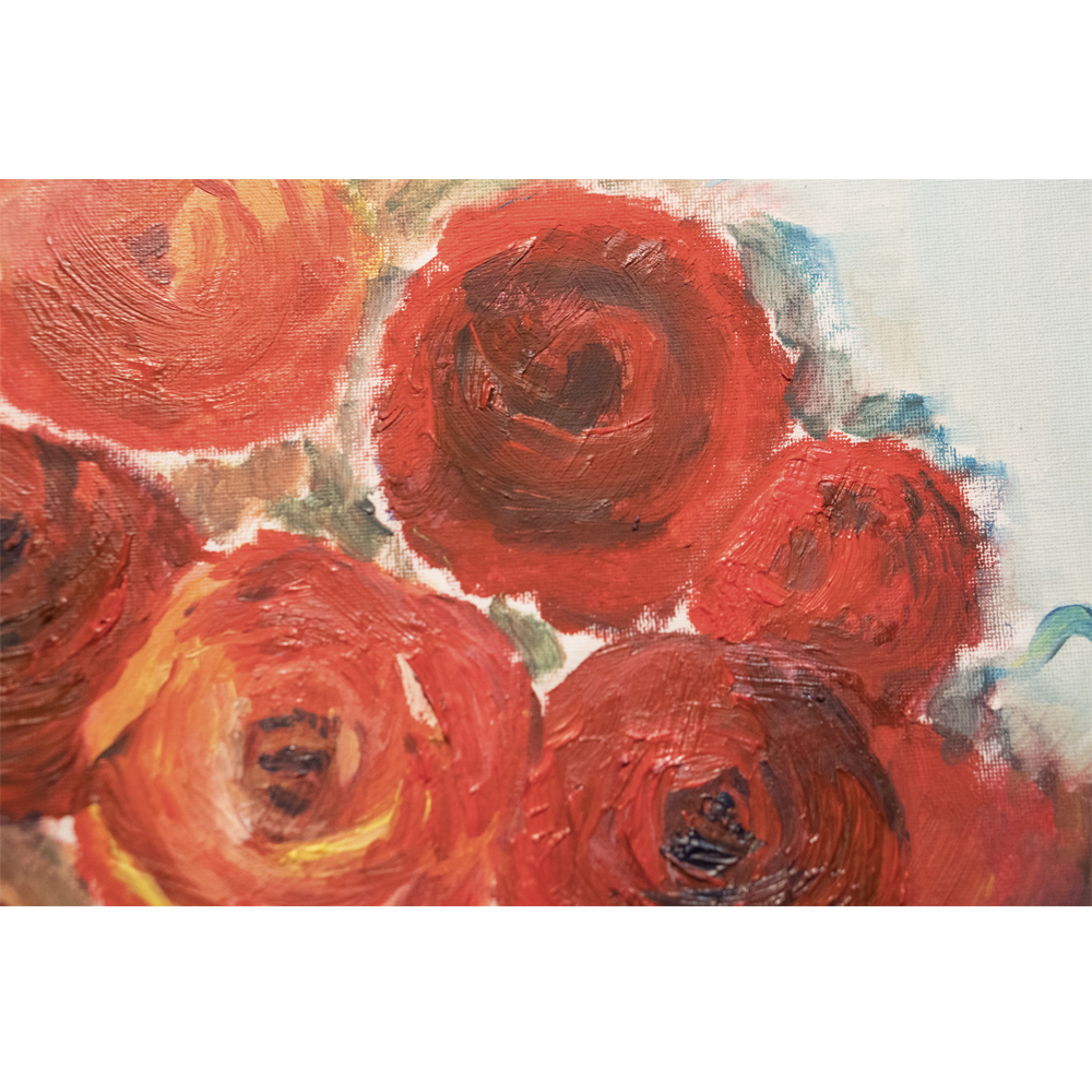 Картина маслом ручной работы для интерьера "Красные розы", грунтованный холст на картоне, 30х40