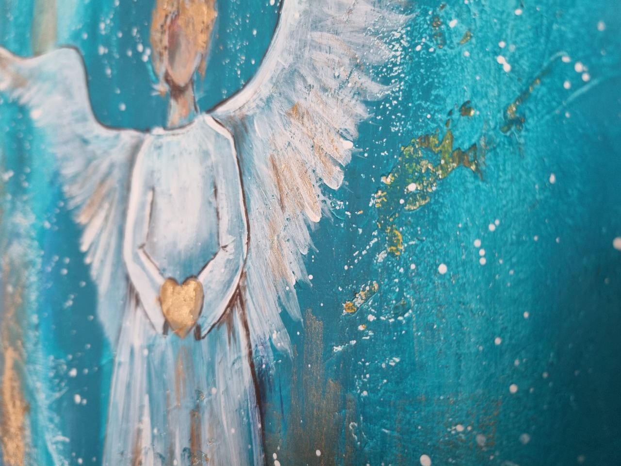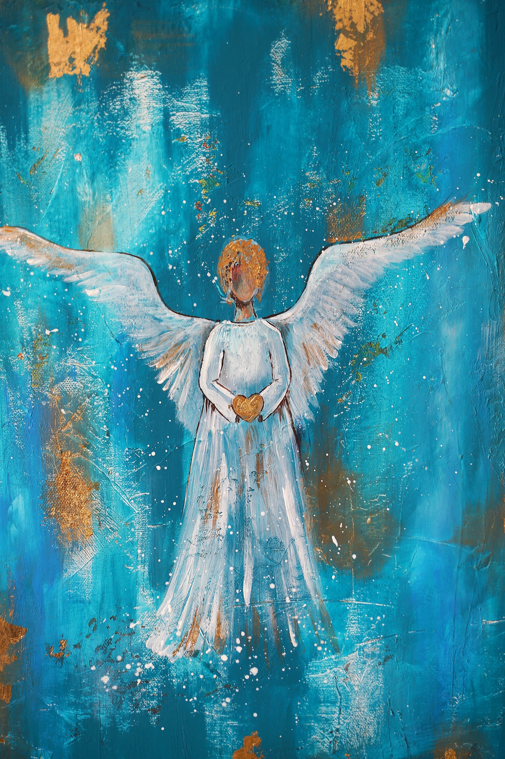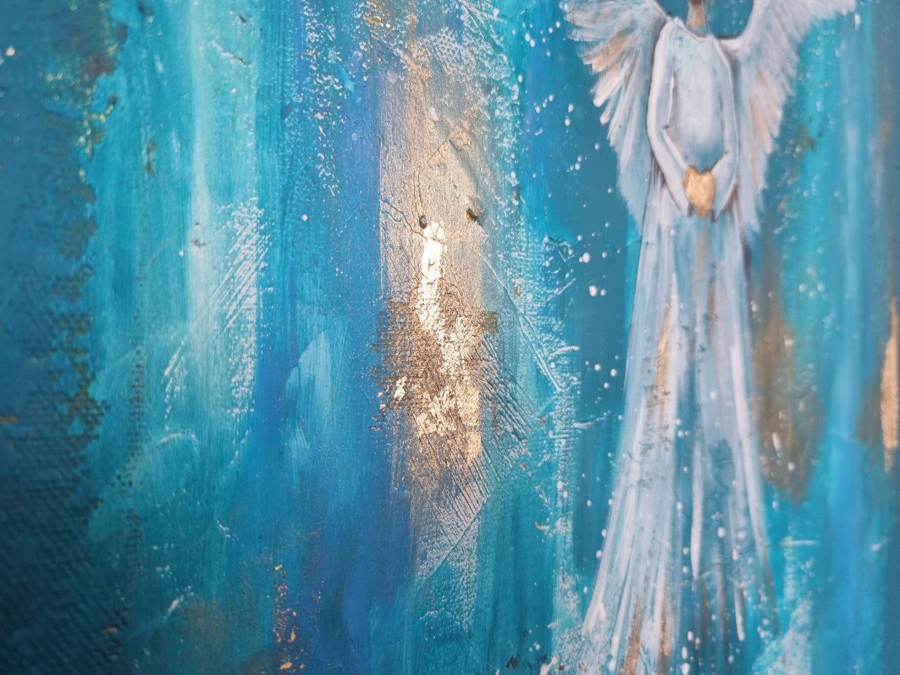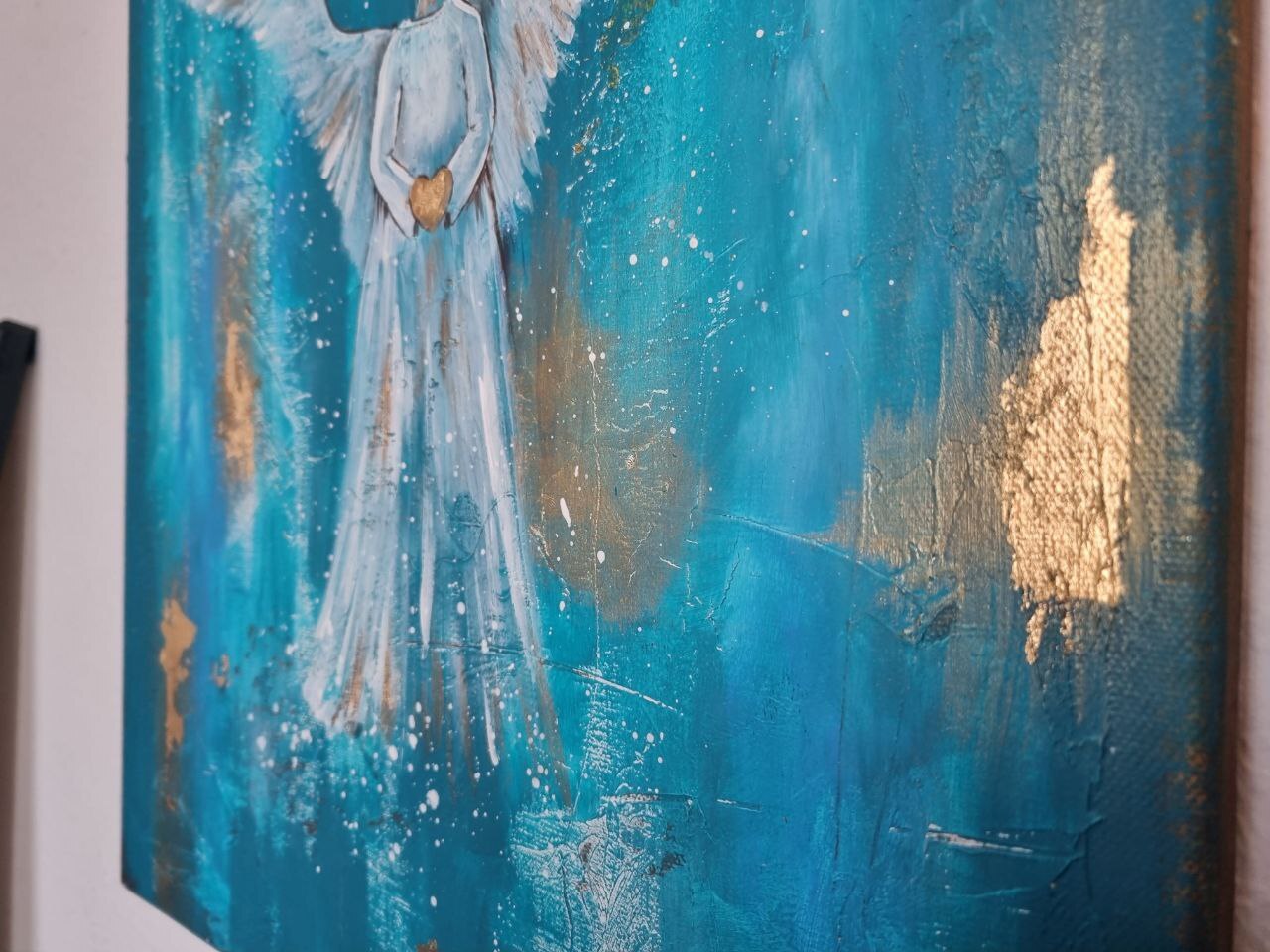 Картина авторская на холсте текстурная с поталью "Ангел-хранитель" 35х45см