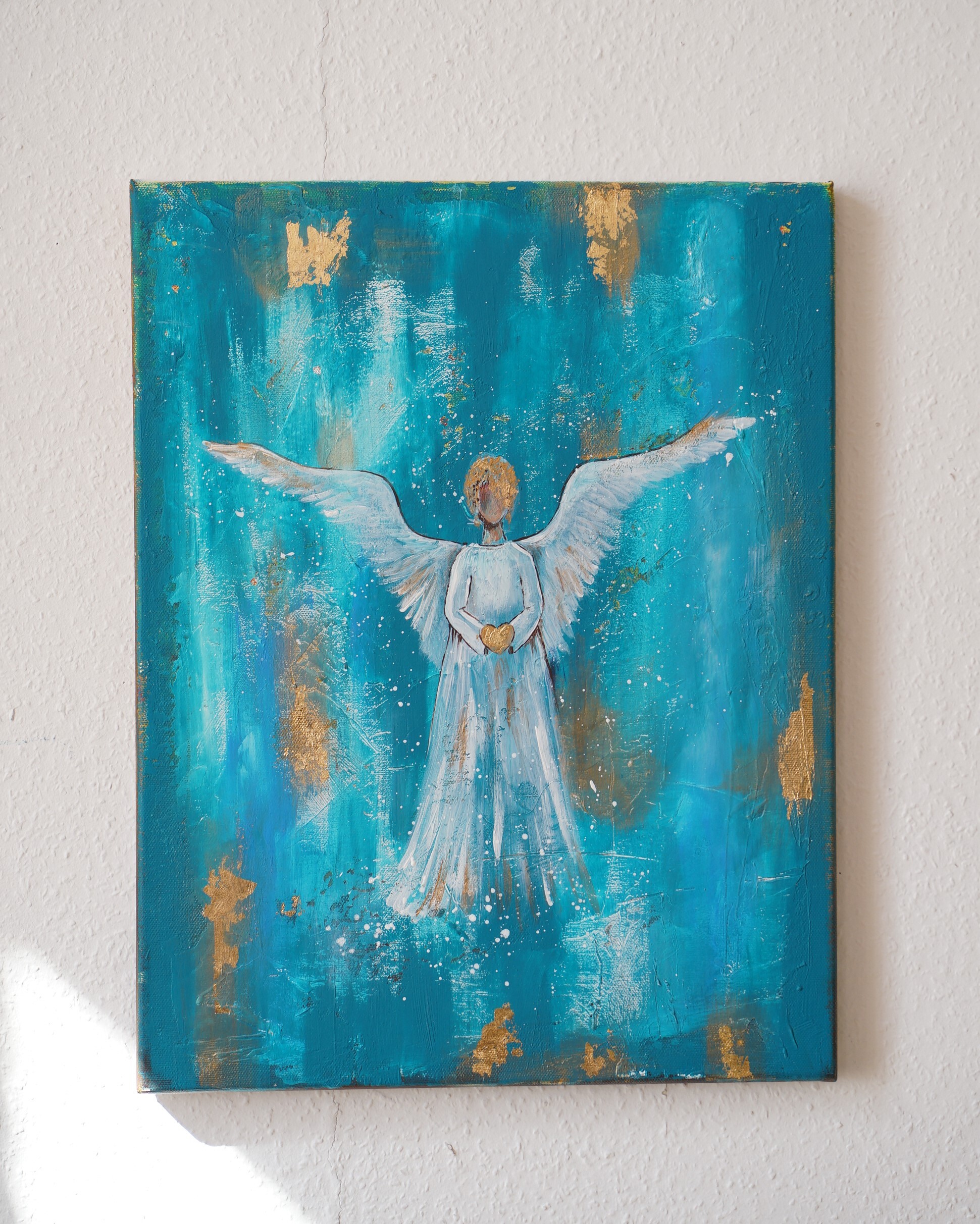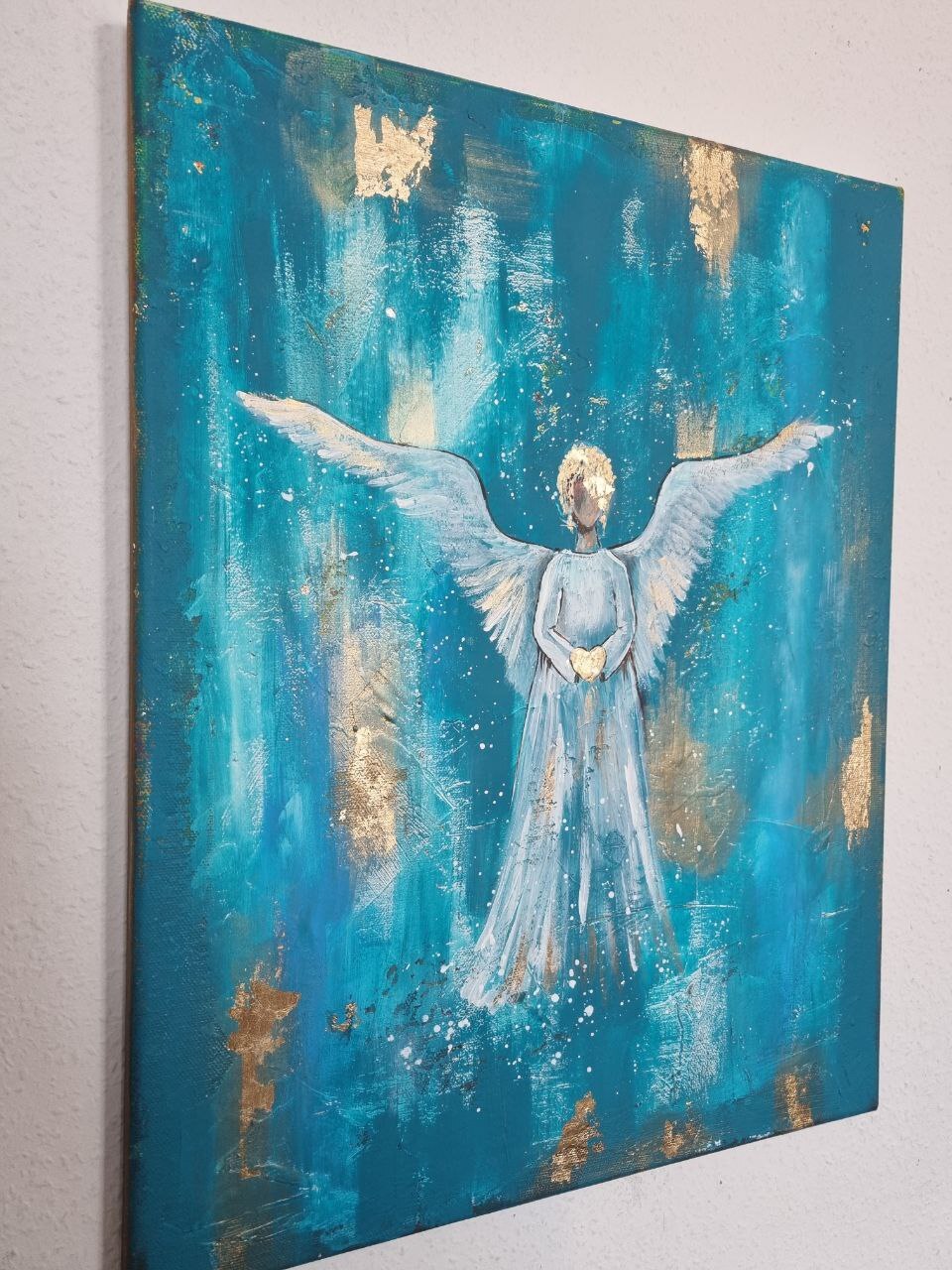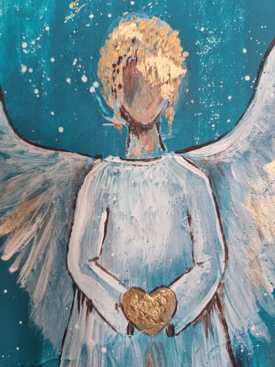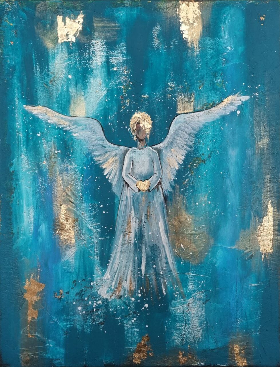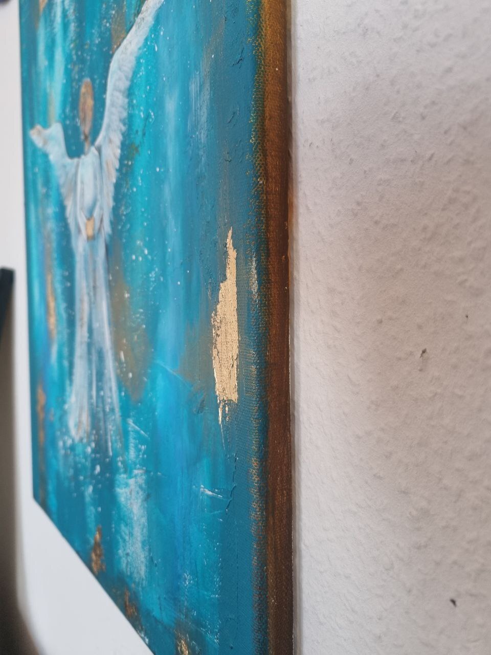 Картина авторская на холсте текстурная с поталью "Ангел-хранитель" 35х45см